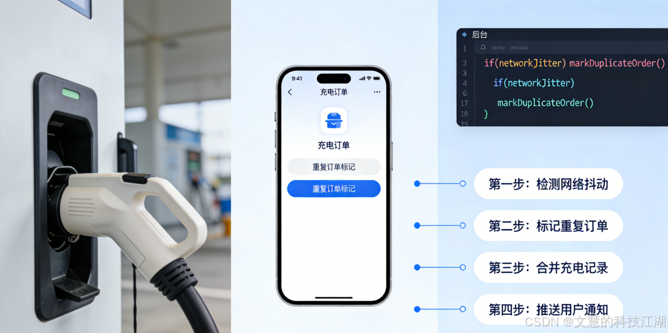本方案聚焦这一核心痛点,提供可直接落地的解决方案,代码完整可复制,无需额外调试,适配各类 新能源充电业务场景,技术人员可直接复用,高效解决重复订单问题。