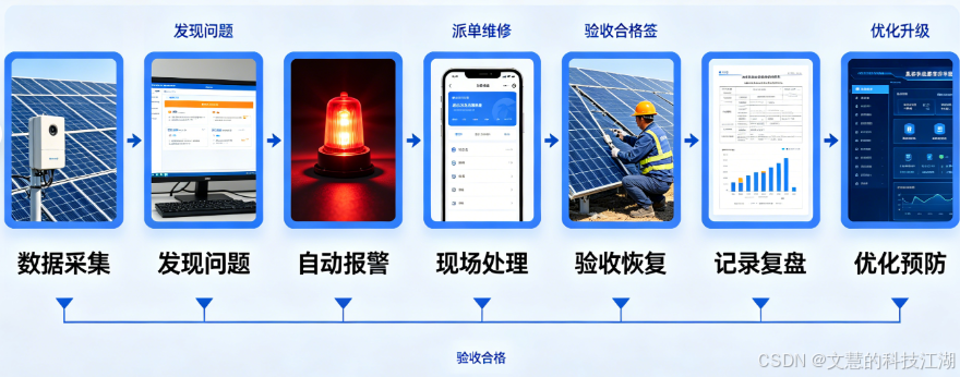 | 闭环保障(让您放心) | 1. 发现问题→自动报警→派单维修→验收恢复→优化预防,全程闭环;2. 并网异常、补贴申报全程跟踪,确保问题不遗留;3. 故障复盘总结,避免同类问题重复出现 |